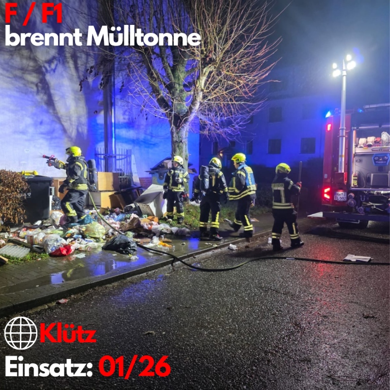 Der erste Einsatz dieses Jahres führte uns in die Bamburg, wo ein Müllcontainer in Brand geraten war.