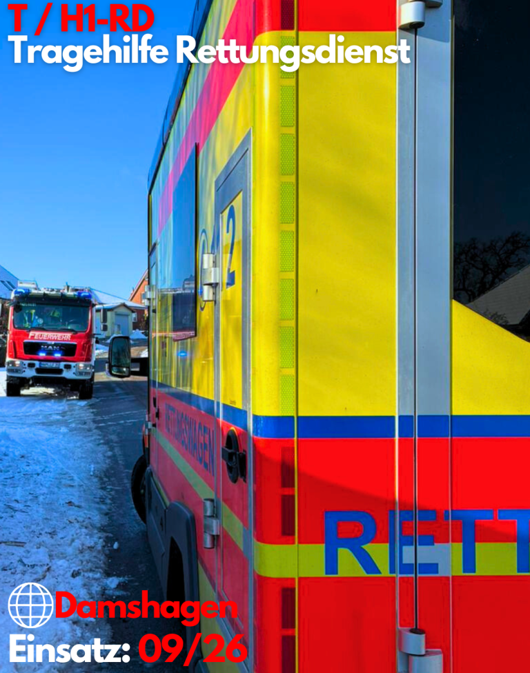 Am Vormittag alarmierte uns die Leitstelle gemeinsam mit den Kameraden der FF-Damshagen zur Unterstützung des Rettungsdienstes nach Damshagen.