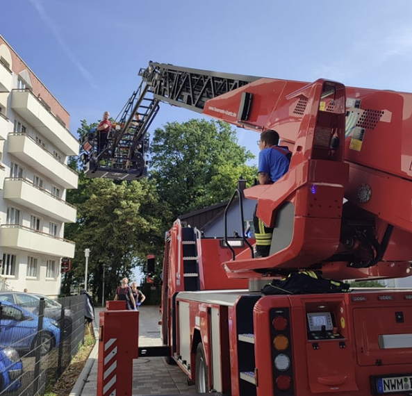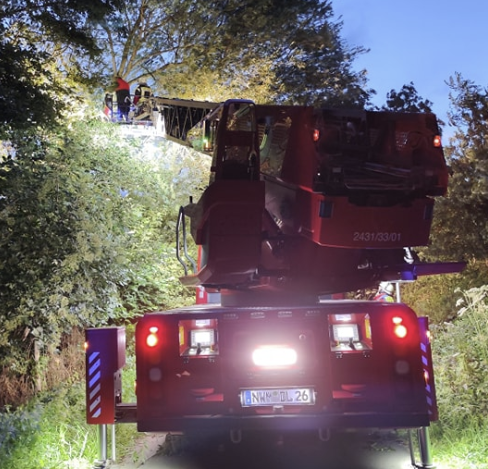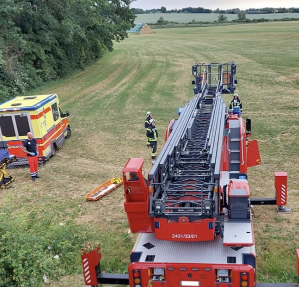 Heute Nachmittag wurden wir zur Unterstützung des Rettungsdienstes nach Hofzumfelde alarmiert. Eine Person musste aus dem Obergeschoss eines Hauses transportiert werden. Da dies über das Treppenhaus nicht möglich war, kam unsere Drehleiter dort zum Einsatz. Mit der Korbtrage wurde die Person aus dem Haus geholt und in den Rettungswagen gebracht. Kurze Zeit später konnten wir den Einsatz beenden und wieder einrücken.