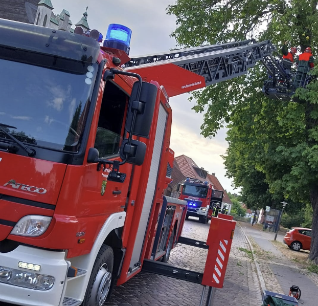 Zu einem Sturmschaden wurden wir am gestrigen Nachmittag nach Steinbeck alarmiert. Zwischen Steinbeck und Elmenhorst drohte ein großer Ast auf die Straße zu fallen. Mit der Drehleiter und einer Motorkettensäge wurde der Ast entfernt am Boden aufgearbeitet und die Fahrbahn beräumt. Kurze Zeit später konnten wir den Einsatz beenden, wieder einrücken und am. Gerätehaus die Einsatzbereitschaft wieder herstellen.