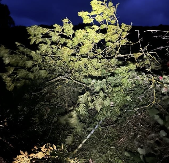 Zu unserem 2.Einsatz wurden wir nach Kühlenstein alarmiert. Dort ist ein Baum in eine Telefonleitung gekippt und blockierte dabei die Straße. Mit der Motorkettensäge wurde der Baum aufgesagt und die Reste mit Manpower an die Seite geräumt. Kurze Zeit später konnten wir den Einsatz beenden und wieder einrücken. Am Gerätehaus wurden dann die benutzten Sachen wieder einsatzbereit gemacht.