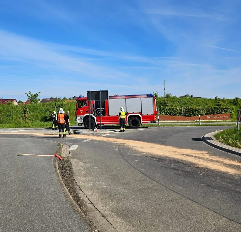 Aufgrund der Wetterverhältnisse war es nicht weiter möglich, den Kraftstoff komplett aufzunehmen. Hierzu wurde die Firma Hoffmann und Berger zur Straßenreinigung hinzugezogen.
