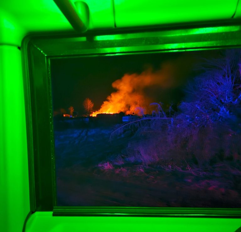 Nachdem das Feuer unter Kontrolle gebracht worden war, leuchteten wir die Einsatzstelle aus.