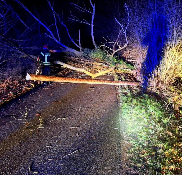 Heute Morgen alarmierte uns die Leitstelle in die Dorfstraße zwischen Goldbeck und Kühlenstein. Vor Ort bestätigte sich das Stichwort. Der durch den Sturm umgefallene Baum riss hierbei einen Telefonmast mit um. Der Baum wurde mittels Motorkettensäge aufgearbeitet und die Straße im Anschluss grob gereinigt. Der Bauhof der Stadt Klütz unterstützte uns hierbei und kümmerte sich um den Telefonmast.