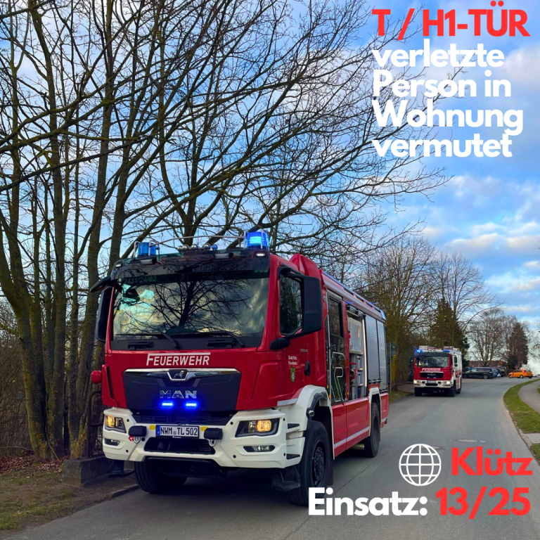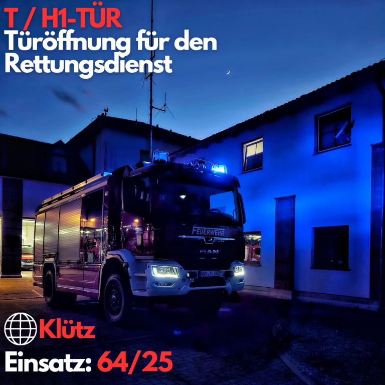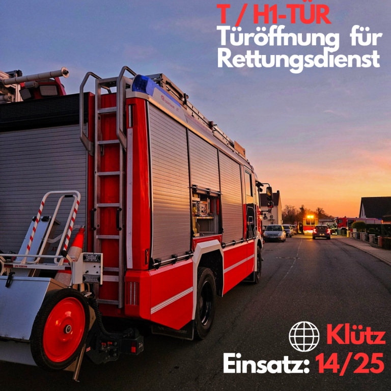 Am späten Abend alarmierte uns gestern die Leitstelle Westmecklenburg zusammen mit dem Rettungsdienst aus Klütz. Gemeldet war eine gestürzte Person, die nicht mehr selbstständig die Tür öffnen konnte. An der Einsatzstelle angekommen, mussten wir in Absprache mit dem Rettungsdienst nicht mehr tätig werden, da die Person die Tür selbstständig öffnen konnte.