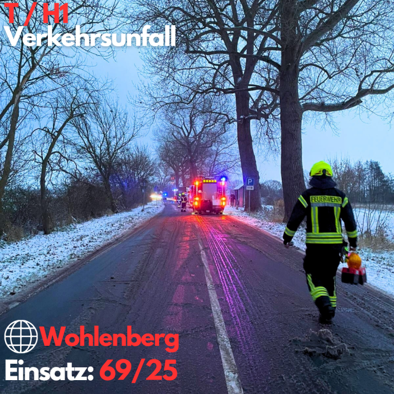 Nach dem ersten Schneefall am Morgen wurden wir infolge eines Verkehrsunfalls nach Wohlenberg alarmiert.