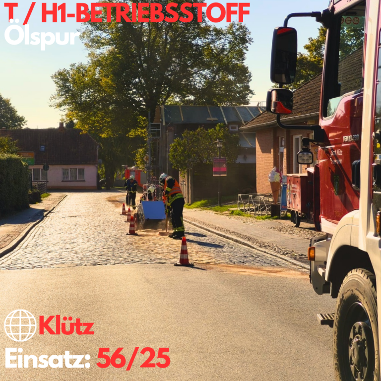Im Rahmen der Gefahrenabwehr wurde die betroffene Strecke mittels Bindemittel abgestumpft und dieses in Zusammenarbeit mit dem Bauhof der Stadt Klütz aufgenommen.