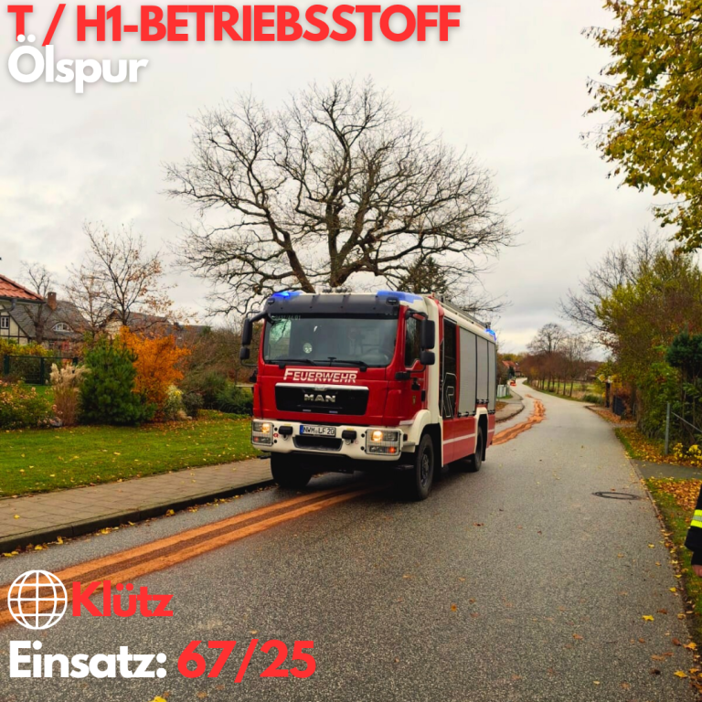 Gegen Mittag wurden wir aufgrund einer Ölspur am Baumarkt in Klütz alarmiert.